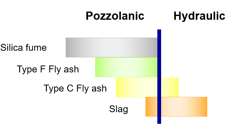 Xỉ cũng tiêu thụ các tinh thể canxi hydroxit sản phẩm phụ từ quá trình thủy hóa xi măng poóc lăng để tạo thành gel CSH bổ sung giúp củng cố các đặc tính cứng của hồ xi măng: tương tự như Pozzolans và Fly Ashes