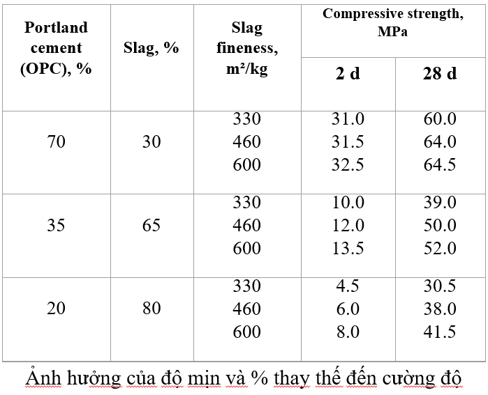 - Ảnh hưởng đến cường độ của xi măng trong hệ xi măng/Xỉ