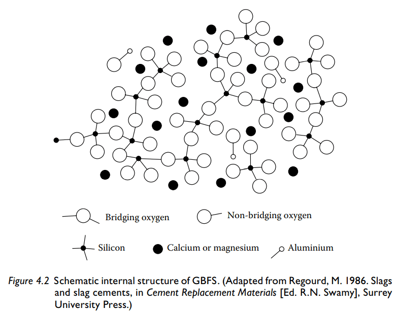 Xỉ cũng tiêu thụ các tinh thể canxi hydroxit sản phẩm phụ từ quá trình thủy hóa xi măng poóc lăng để tạo thành gel CSH bổ sung giúp củng cố các đặc tính cứng của hồ xi măng: tương tự như Pozzolans và Fly Ashes