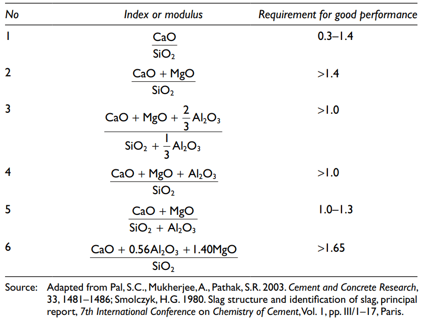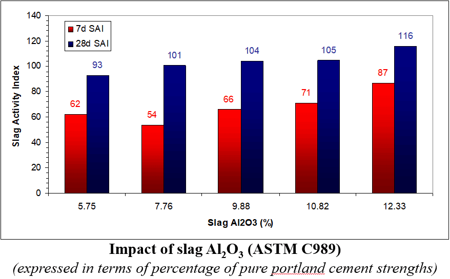 Các thông số hóa học của xỉ làm tăng độ bền của xỉ là: CaO, Al2O3 & MgO