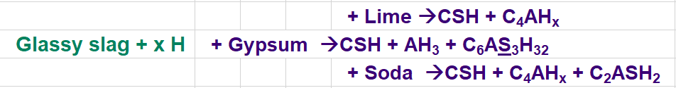 Canxi sunfat và vôi ngậm nước được giải phóng bằng quá trình thủy hóa xi măng kích hoạt quá trình thủy hóa của xỉ