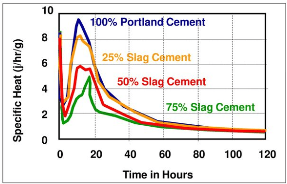Nhiệt tỏa ra giảm khi tăng hàm lượng xỉ trong xi măng