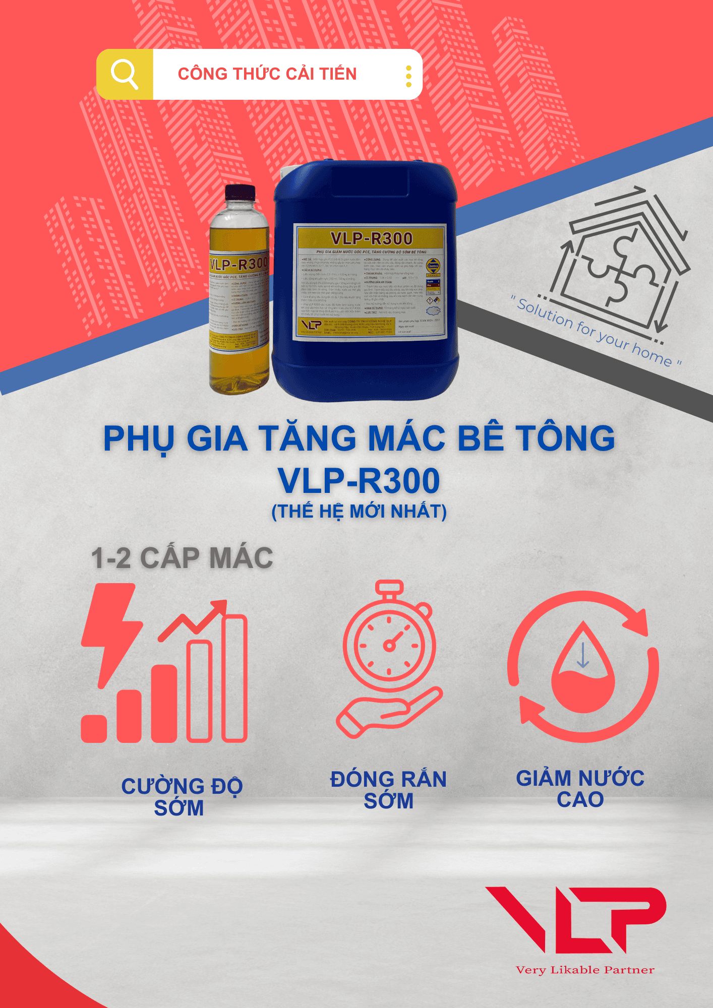 VLP-R300 là phụ gia giảm nước tầm cao gốc PCE thế hệ 3, có hiệu suất cao và thân thiện với môi trường, được thiết kế đặc biệt để sản xuất bê tông có cường độ ban đầu cực cao, giúp giảm hiệu quả các mao mạch trong bê tông nên có khả năng chống thấm hiệu quả, phát triển rất nhanh cường độ sớm, tăng khả năng công tác của bê tông.